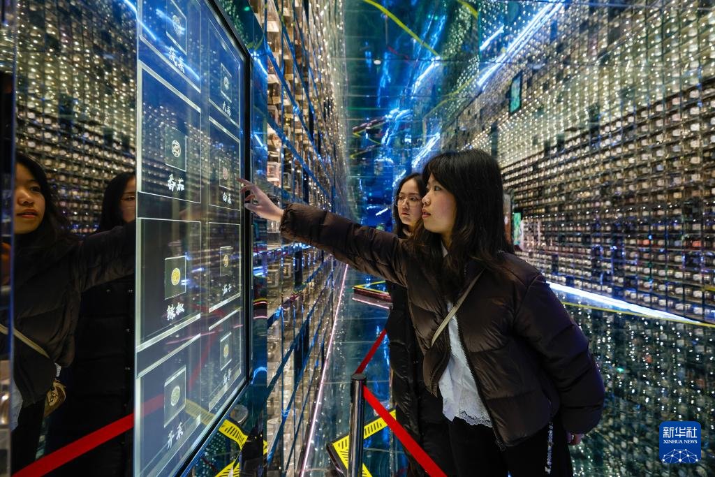 3月13日,在四川省成都彭州市,参观者在“种子银行”内借助互动屏幕了解蔬菜种子的知识。