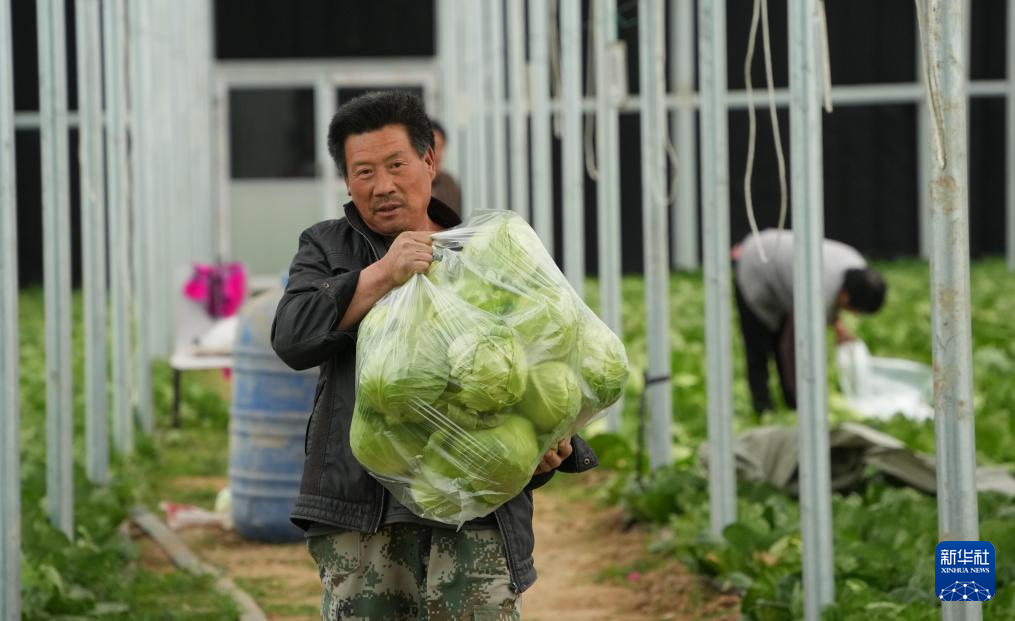 近日,山东省新泰市刘杜镇的春季大棚卷心菜进入收获期,棚内棚外处处忙碌景象。