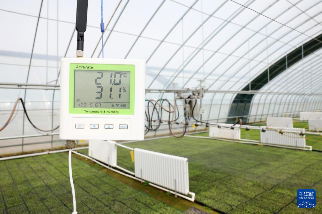4月1日,在榆中县夏官营镇的满福蔬菜种植专业合作社育苗基地内,智能温控设备实时监测菜苗生长环境。
