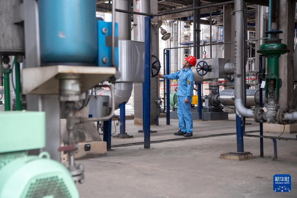 4月22日,中国石化集团重庆川维化工有限公司工作人员在厂区巡检生产装置。