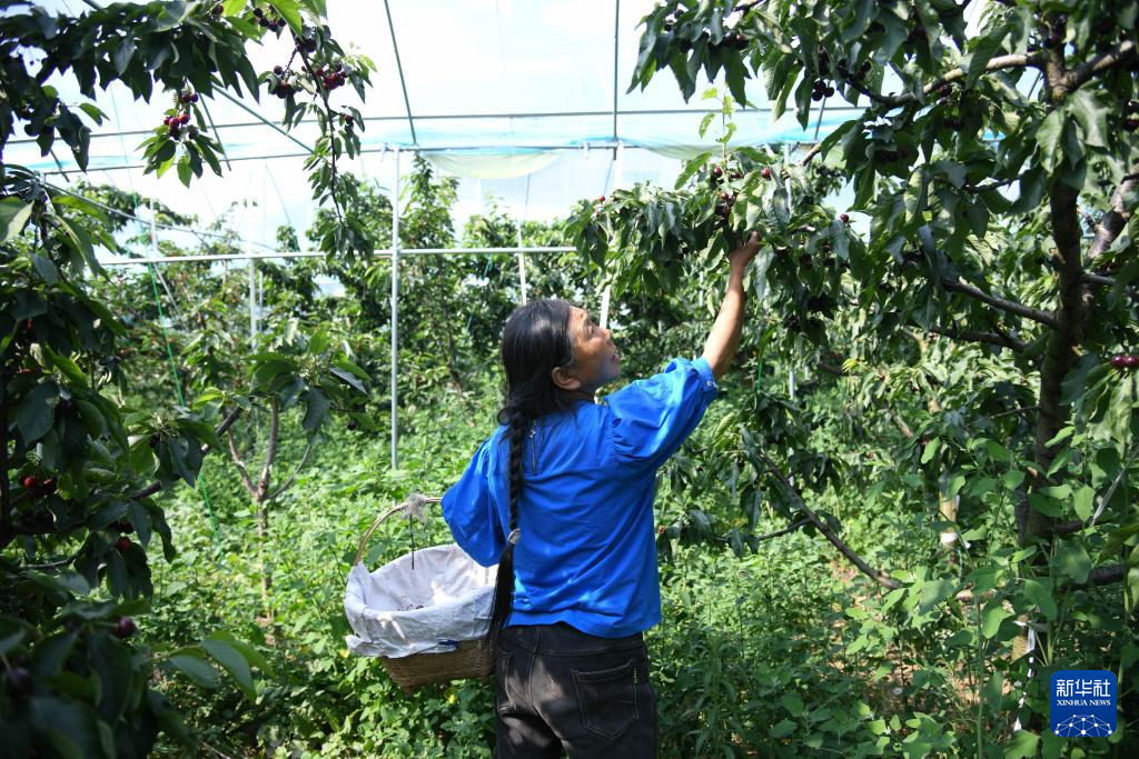 6月16日,在汉源县清溪镇甜樱桃现代农业园区,果农采摘樱桃。