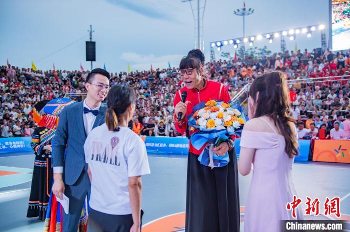 图为中国篮球名宿郑海霞(右二)与球迷互动。黄灿宪 摄