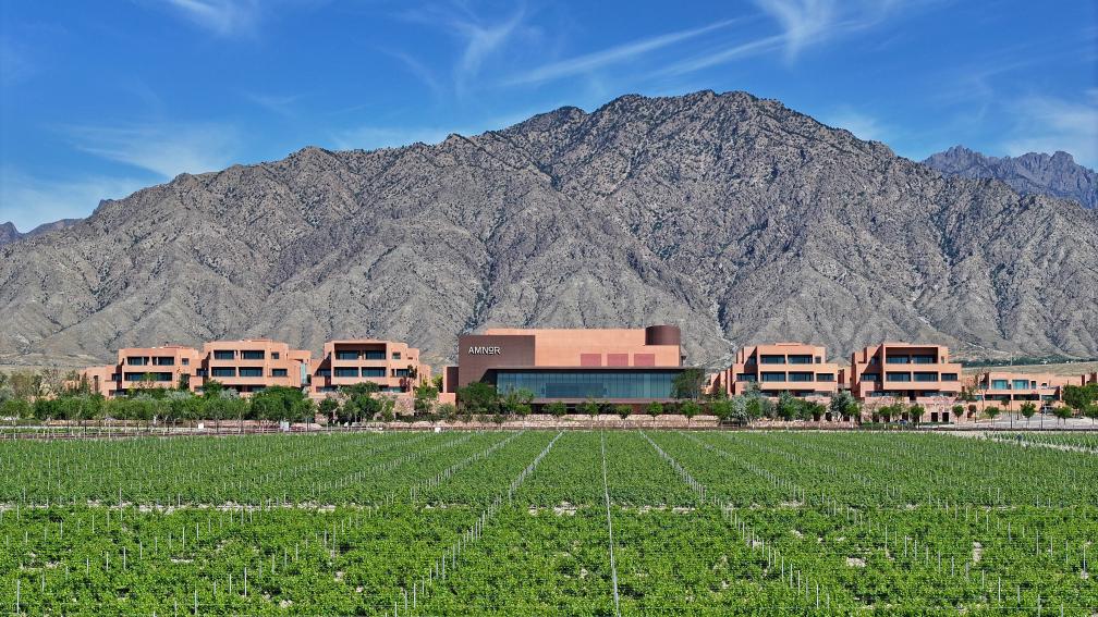 安漠酒店的大厅设有葡萄酒品鉴室,一款款来自贺兰山东麓葡萄酒产区的酒庄名酒陈列其中,游客可在侍酒师的讲解下,品尝一杯美酒里的“风土”。“我们不仅是一家酒店,还是葡萄酒生活的提倡者,依托贺兰山的自然风光,融入葡萄酒文化,为游客打造一种‘微醺’慢生活。”安漠酒店市场传讯经理杨盼说。