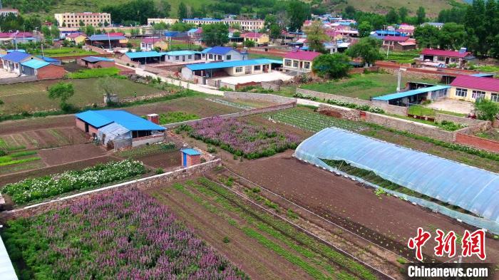 雨后初霁的清晨,薄纱轻笼着乡村,内蒙古自治区兴安盟科右前旗境内,山坡上、庭院里、示范园的中药材已遍地开花。