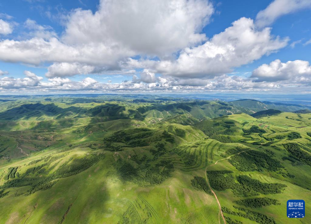 这是7月5日拍摄的敕勒川高山草原风光(无人机拼接照片)。