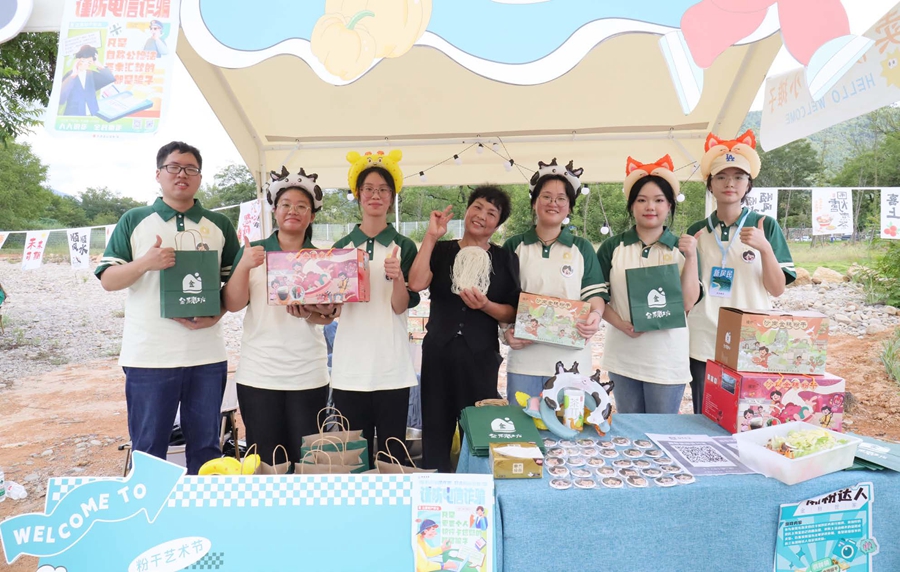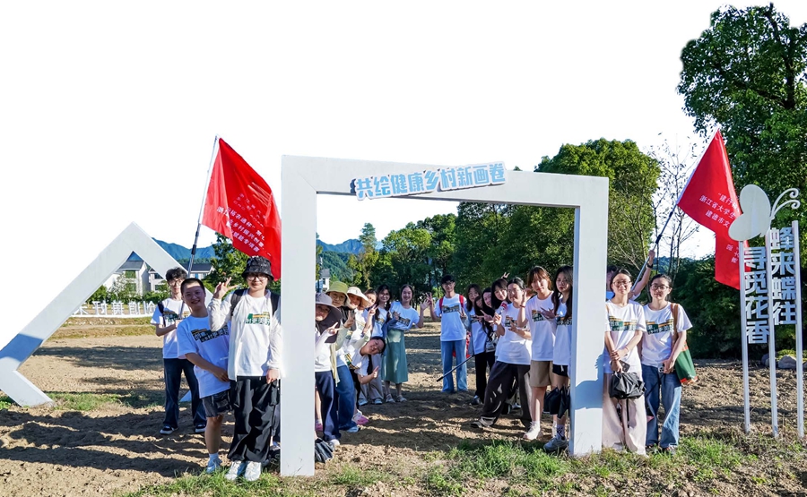 图为参加温州市永嘉县“青年驻村计划”的青年学生。大学生们不仅为当地策划并举办品牌活动,还为当地做了空间改造、农产品包装等。不仅吸引了观众,也为村民带来了经济收益。
