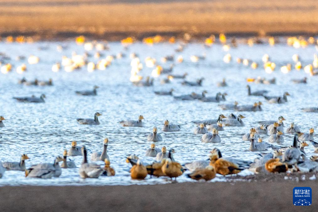 这是11月23日在西藏拉萨市林周县拍摄的越冬候鸟。