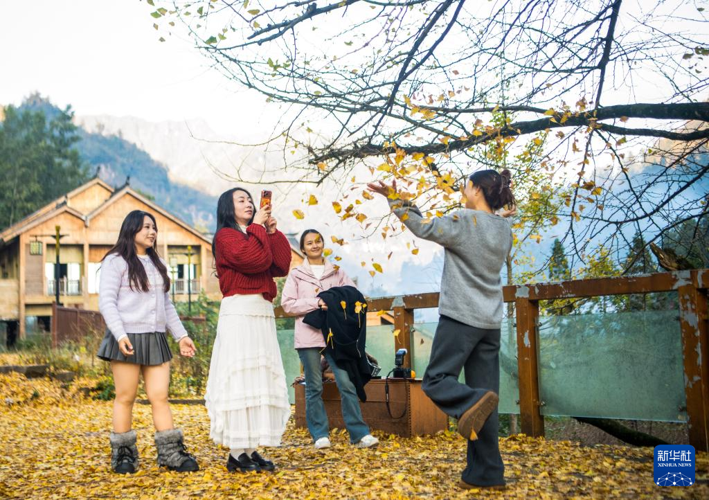 11月21日,游客在中益乡游玩拍照。