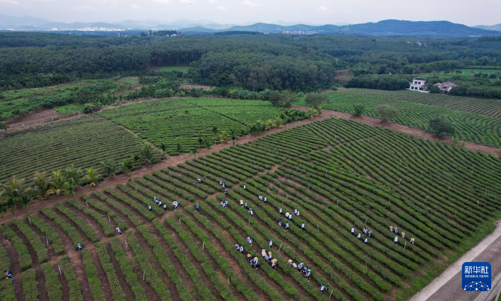 在海南省白沙黎族自治县五里路茶园,学生在体验采茶(11月20日摄,无人机照片)。
