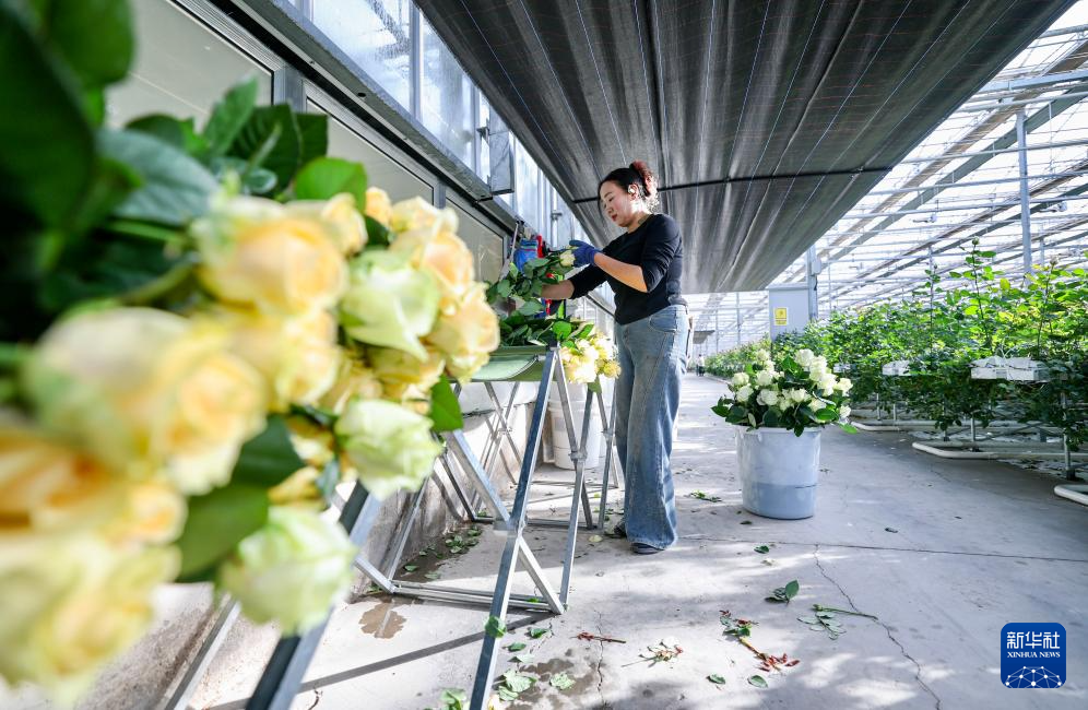 11月25日,在位于宁夏银川市兴庆区大新镇的农业高科技智慧示范园内,工人在分拣玫瑰。