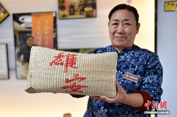 11月26日,河北雄安新区安新县赵北口镇杨庄子村“创富工坊”内,工作人员展示蒲草工艺品。中新社记者 韩冰 摄