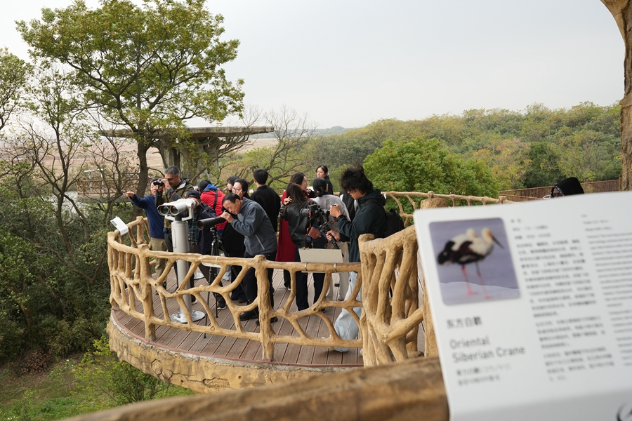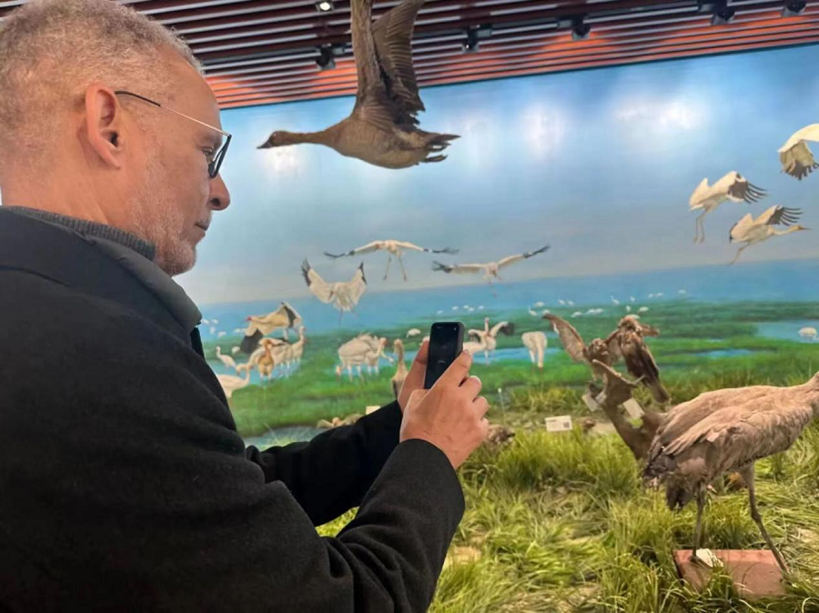 图为访团嘉宾参观鄱阳湖国际湿地候鸟馆。