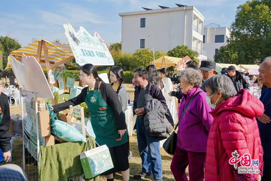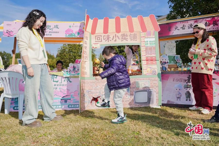 11月30日,集创意文创、非遗展演、互动体验于一体的“浙派民居”专项闭幕式暨青春市集在广陈镇明月山塘景区举行。绍兴文理学院的“杉青江湖令”剧本杀展位吸引亲子家庭参与剧情,在“菌菇基地智斗”环节学习种植知识,间接带动周边菌菇农户销售;宁波城市职业技术学院的“桥你欢心”文创展位,印有浙派民居元素的徽章、明信片、小镜子成为热门伴手礼……每位游客都能直观感受“产业赋能乡村”的民生温度。