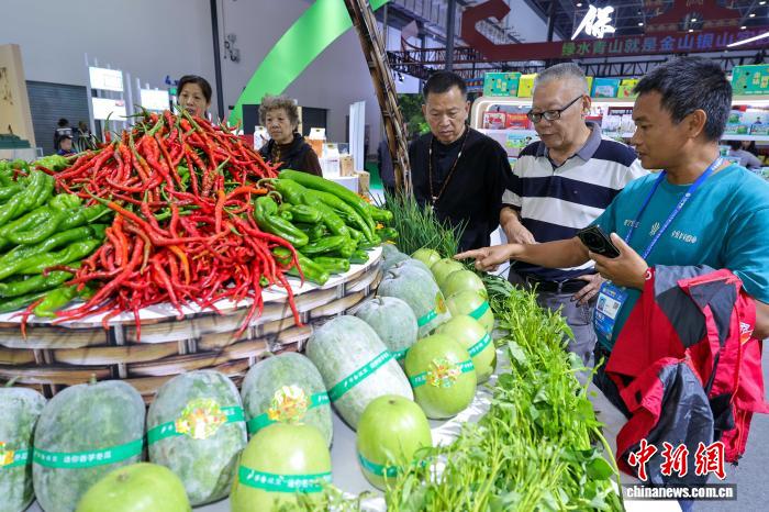 图为展出的特色农产品吸引参观者。中新社记者 骆云飞 摄