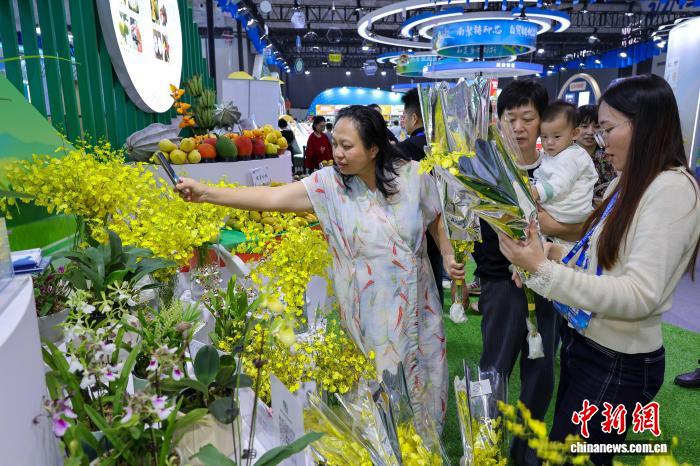 图为参观者在冬交会现场选购兰花。中新社记者 骆云飞 摄