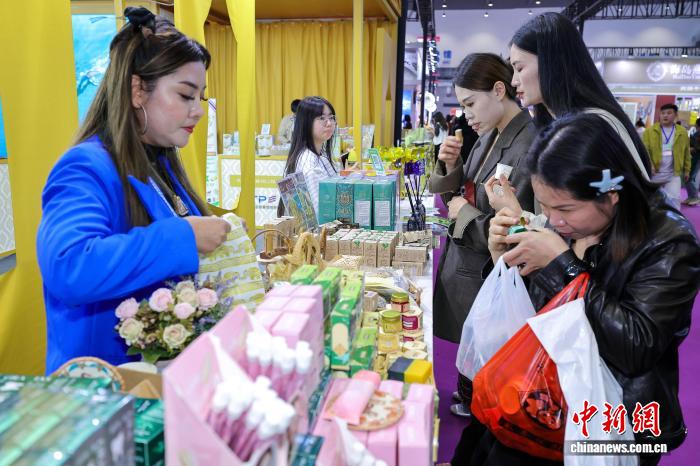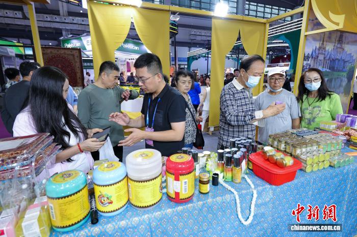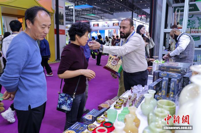 图为参观者在巴基斯坦馆选购商品。中新社记者 骆云飞 摄