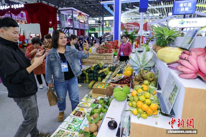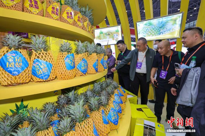 图为展出的特色热带农产品吸引参观者。中新社记者 骆云飞 摄