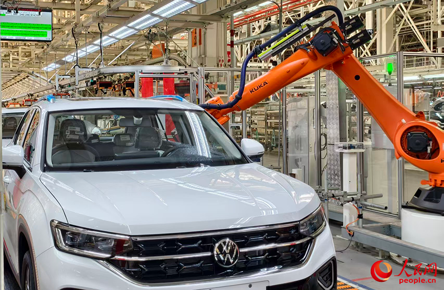 总装车间内,全自动整车测量设备正对新车进行全自动激光检测。人民网记者 郭维瑾摄