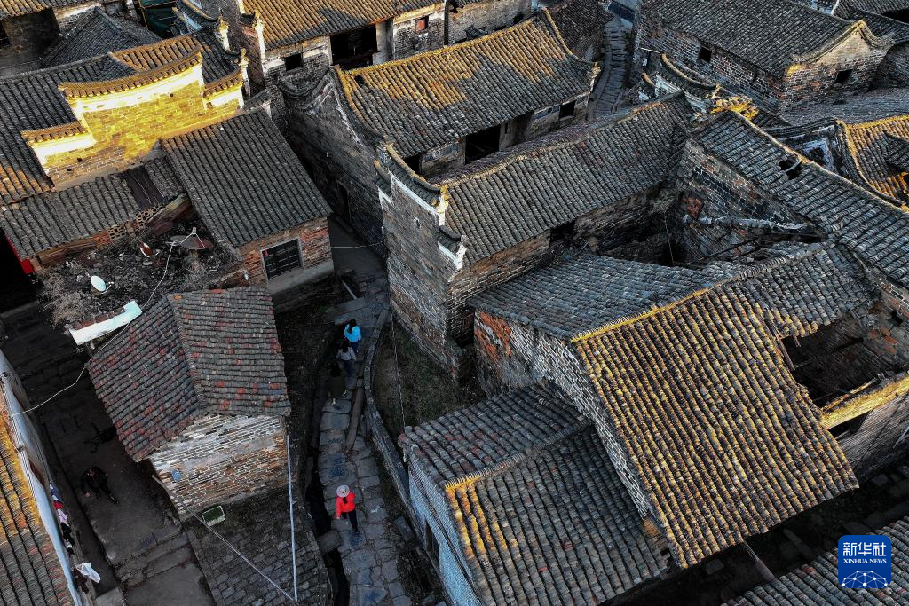 11月26日,游人在郴州永兴县板梁古村参观游览(无人机照片)。