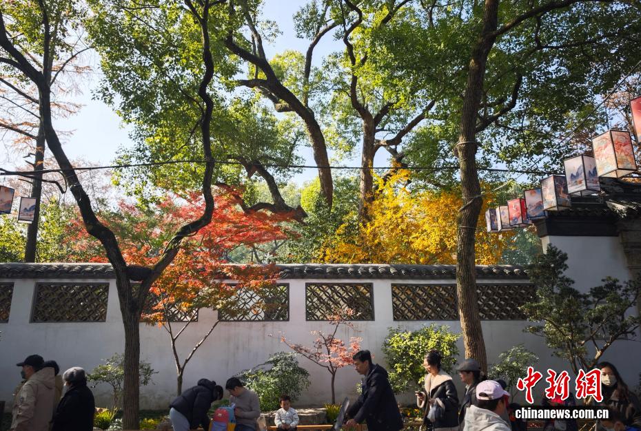 12月7日,江苏无锡,游客在惠山古镇参观。近日,惠山古镇迎来最美时节,银杏、枫叶、乌桕等绚丽草木色彩与古建筑相映衬,吸引民众前来感受江南古韵。