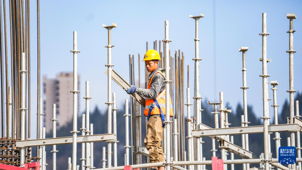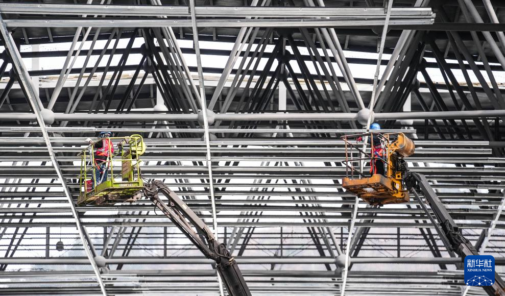 12月11日,工人在六盘水站站房及站场改造工程施工现场施工。