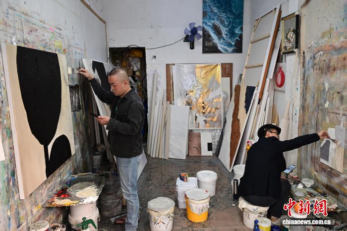 12月11日,画工在大芬油画村画油画。大芬油画村位于广东省深圳市龙岗区布吉街道大芬社区,是全国最大的商品油画生产、交易基地之一,有着“中国油画第一村”之称。目前村内共有大小画廊及门店1200余家,村内聚集油画从业人员约8000人。中新社记者 田雨昊 摄