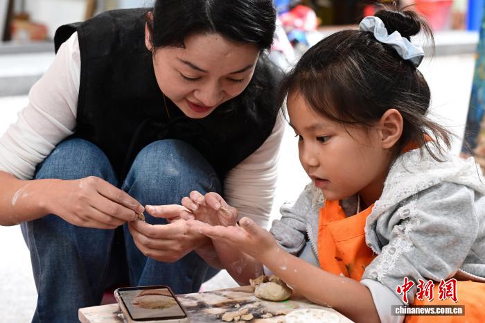 12月11日,家长和小朋友在大芬油画村体验陶艺制作。大芬油画村位于广东省深圳市龙岗区布吉街道大芬社区,是中国最大的商品油画生产、交易基地之一,有着“中国油画第一村”之称。目前村内共有大小画廊及门店1200余家,村内聚集油画从业人员约8000人。中新社记者 田雨昊 摄