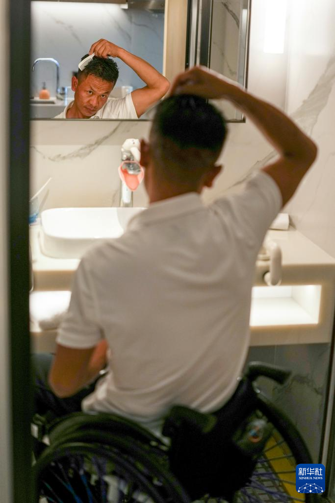 12月12日,西藏轮椅篮球队球员旦增使用运动员酒店的无障碍洗手间。旦增表示“从酒店各个细节可以看出,工作人员是真正懂得我们残障人士的需求。”