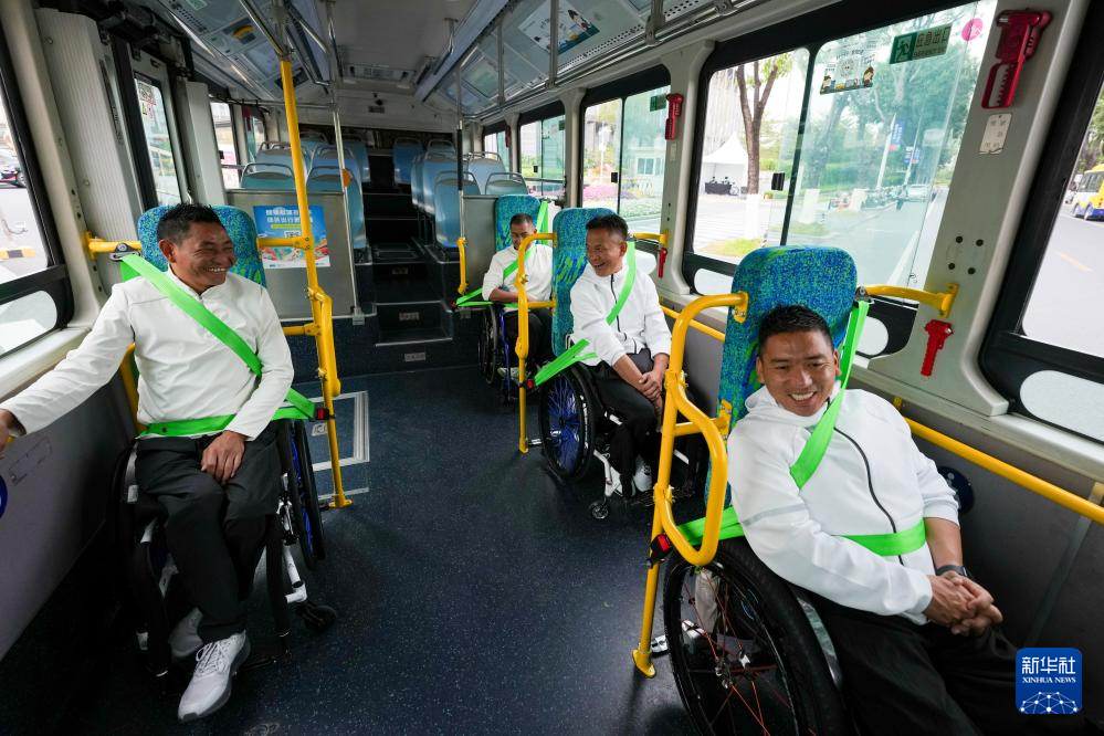 12月12日,西藏轮椅篮球队球员乘坐无障碍巴士前往赛场。