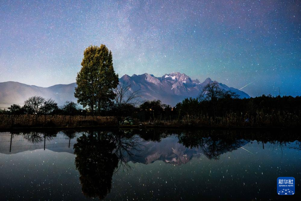 12月13日凌晨在云南省丽江市白沙镇拍摄的双子座流星雨。