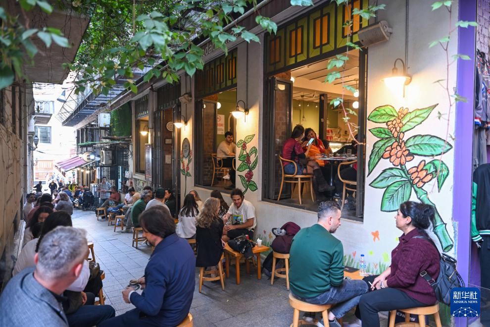 11月22日,顾客们在土耳其伊斯坦布尔的曼达巴特马兹咖啡店外的巷道里喝咖啡。