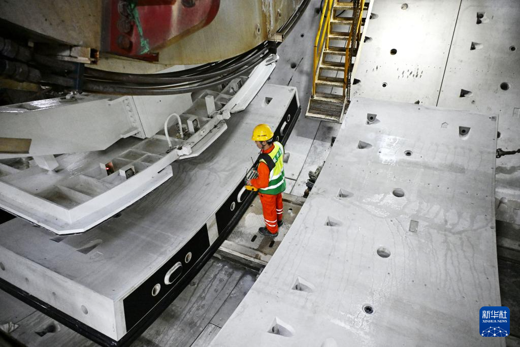 12月15日,中铁十四局建设者在海平面下91米进行管片拼装作业。