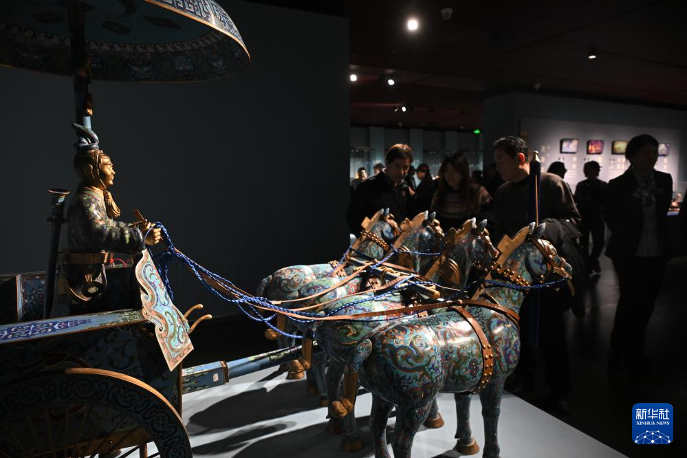12月15日,观众参观展出的景泰蓝作品《兵马战车》。
