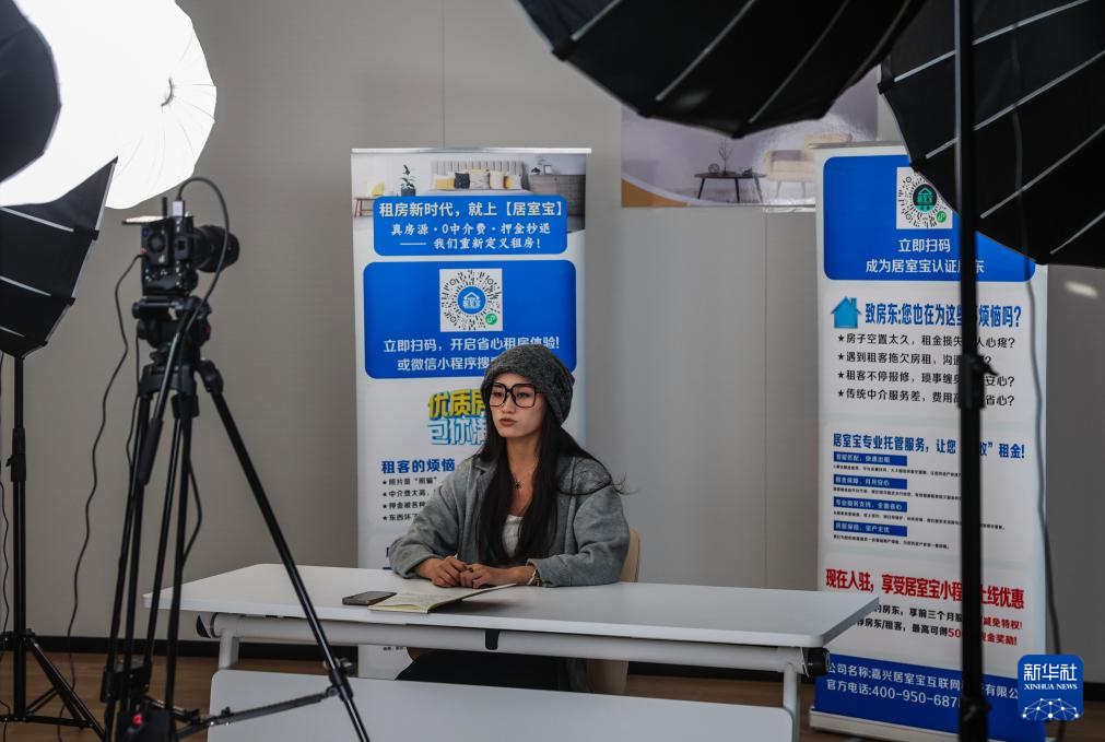 12月18日,在嘉兴电子商务产业园南湖园区公共服务中心的直播间内,一家电商公司工作人员进行直播。