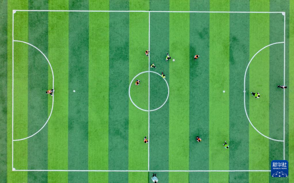 2025年12月18日,福建省龙岩市新罗区小池电力希望小学的学生在课后踢足球(无人机照片)。