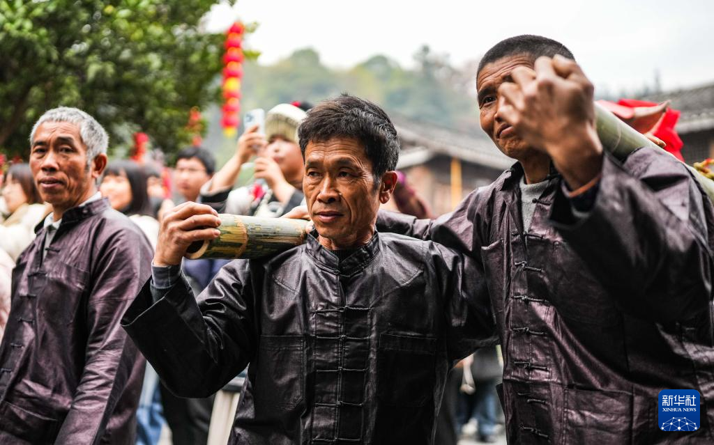 12月20日,在黎平县肇兴侗寨,侗族群众在赛芦笙。