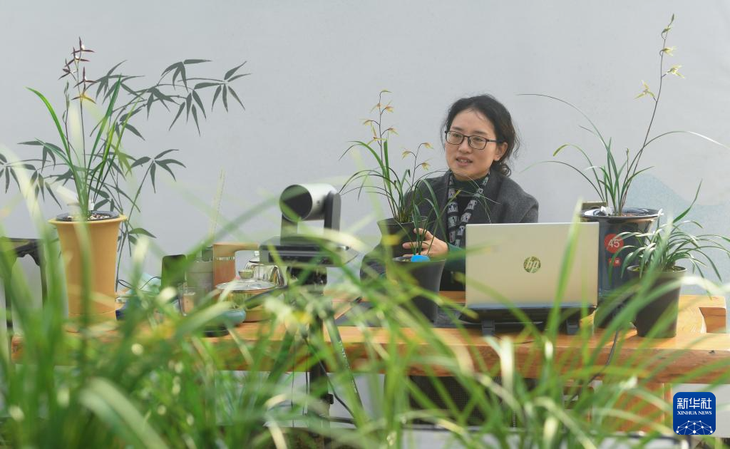 12月25日,“竹乡兰苑”的主播在电商平台直播介绍兰花。