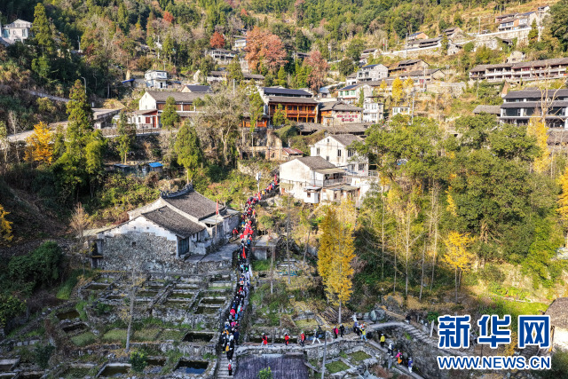 2025年12月6日,在浙江省温州市瓯海区泽雅镇纸源村启动的徒步活动,吸引了近千名户外爱好者参与。新华网发 陈明铭摄