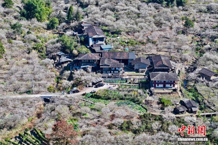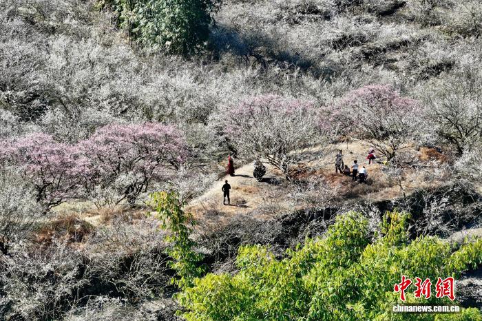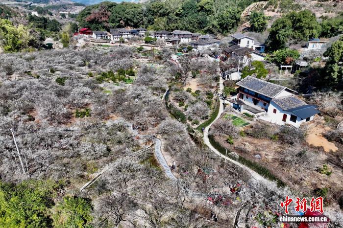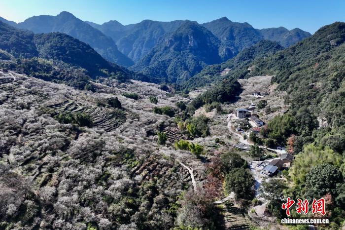 1月4日,航拍福建省永泰县万亩梅林。(无人机照片)中新社记者 王东明 摄