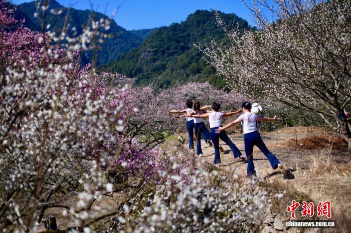 1月4日,游客在福建省永泰县梅林里跳舞。中新社记者 王东明 摄