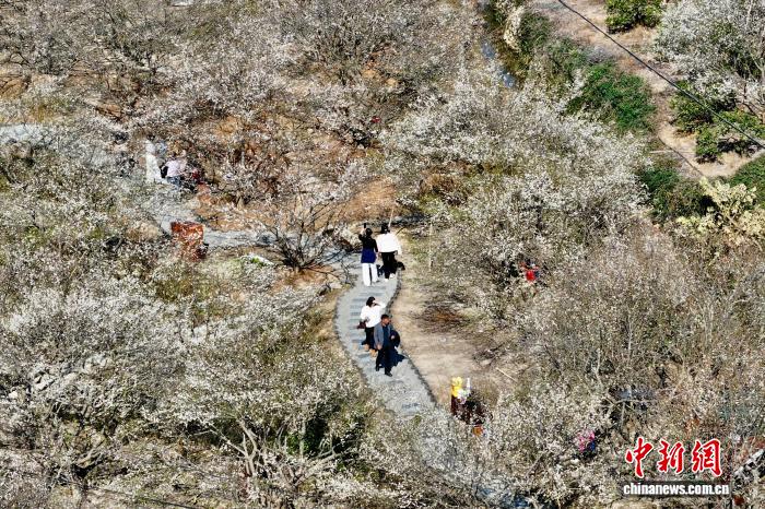 1月4日,游客在福建省永泰县梅林里游玩。(无人机照片)中新社记者 王东明 摄