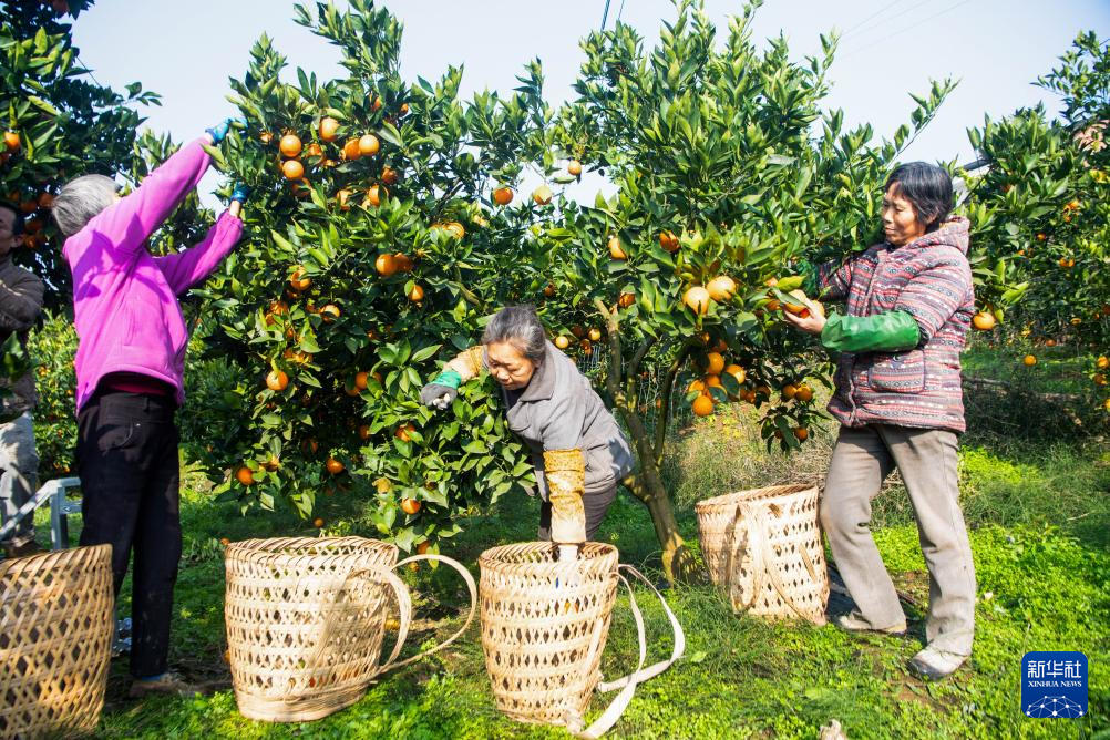 近日,重庆市垫江县包家镇万亩柑橘迎来丰收。近年来,包家镇重点发展柑橘产业,引进优良品种,提升柑橘品质,建成电商直播孵化基地和仓储冷链物流中心,配备智能洗选设备,并借助新媒体平台推广柑橘产品远销全国。