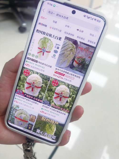 某电商平台“胶州大白菜”的搜索结果。 农民日报全媒体记者 陈艺娇 摄