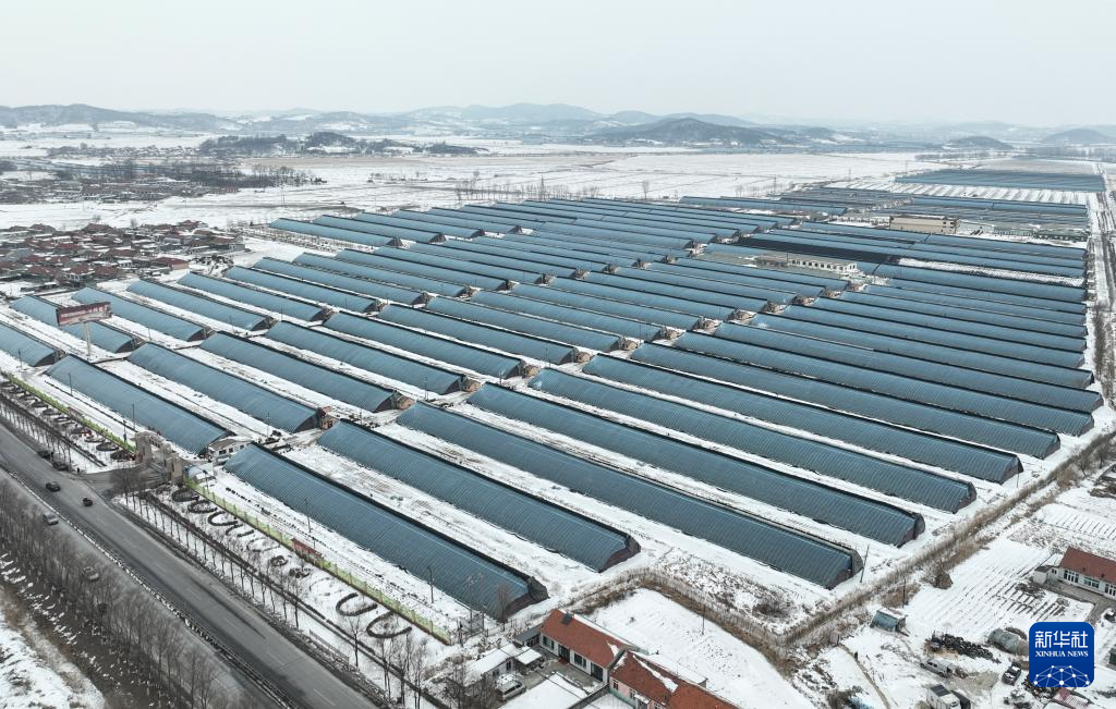 这是1月12日在辽宁东港拍摄的一处草莓大棚外景(无人机照片)。