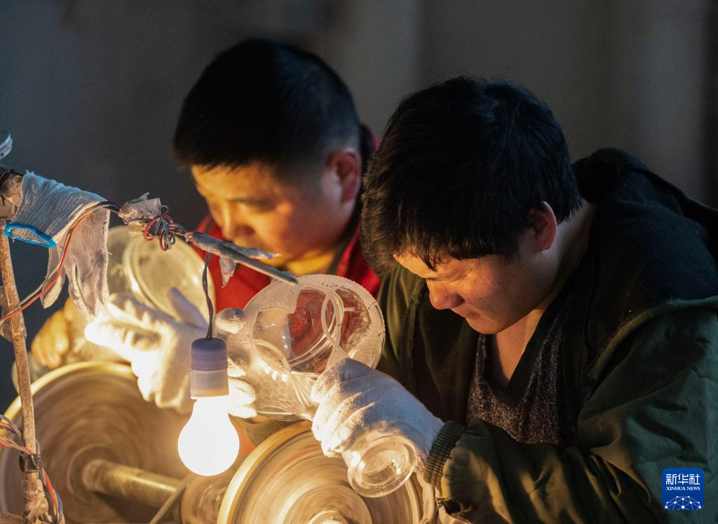 在安徽省天长市石梁镇,工人在制作水烟壶(1月14日摄)。