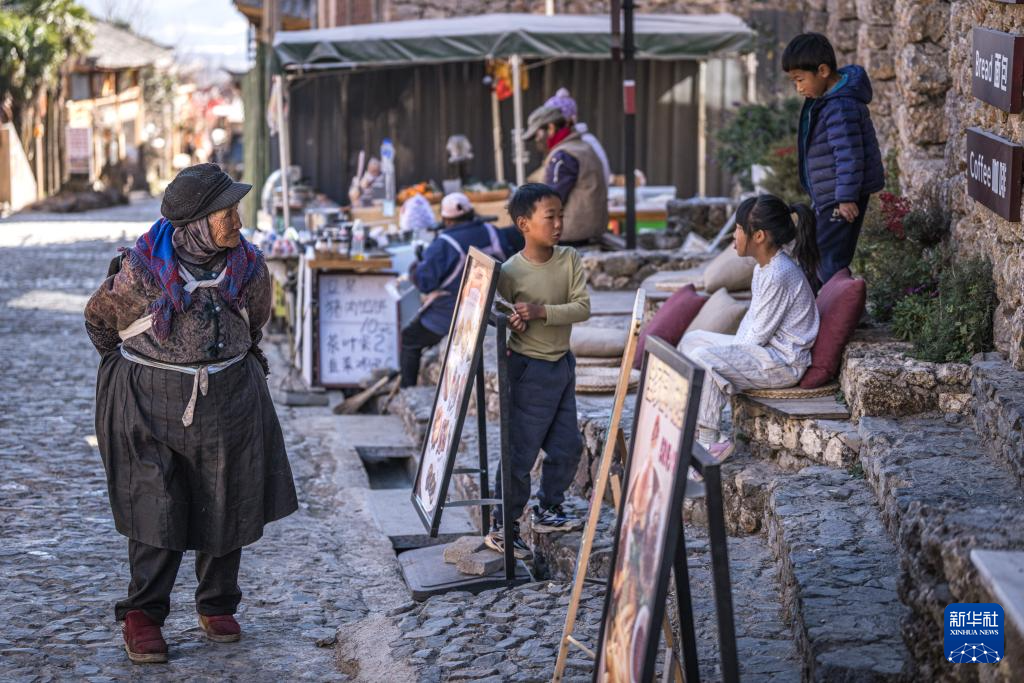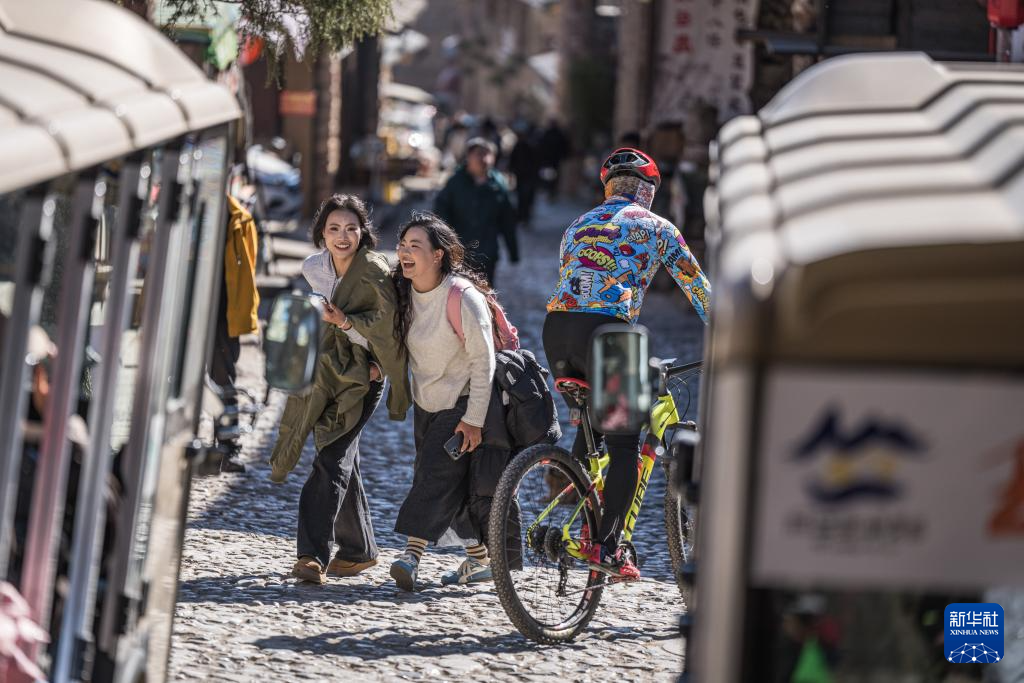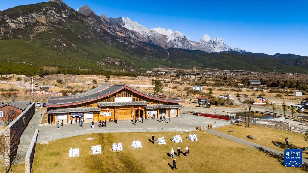 1月17日,游客在丽江市玉龙纳西族自治县白沙镇玉湖村参观游览。