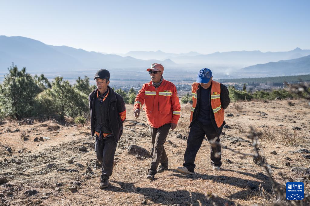 1月18日,玉湖村护林员在玉龙雪山山脚开展防火巡逻工作。