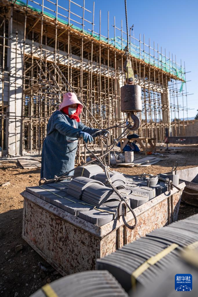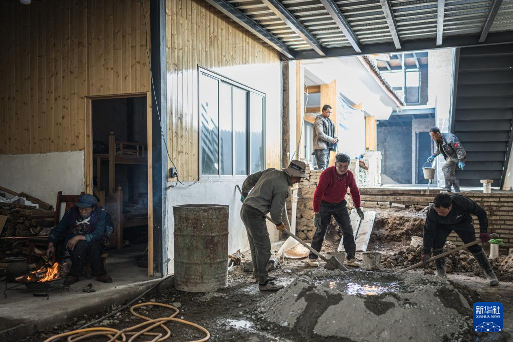 1月17日,工人在丽江市玉龙纳西族自治县白沙镇玉湖村建设民宿。