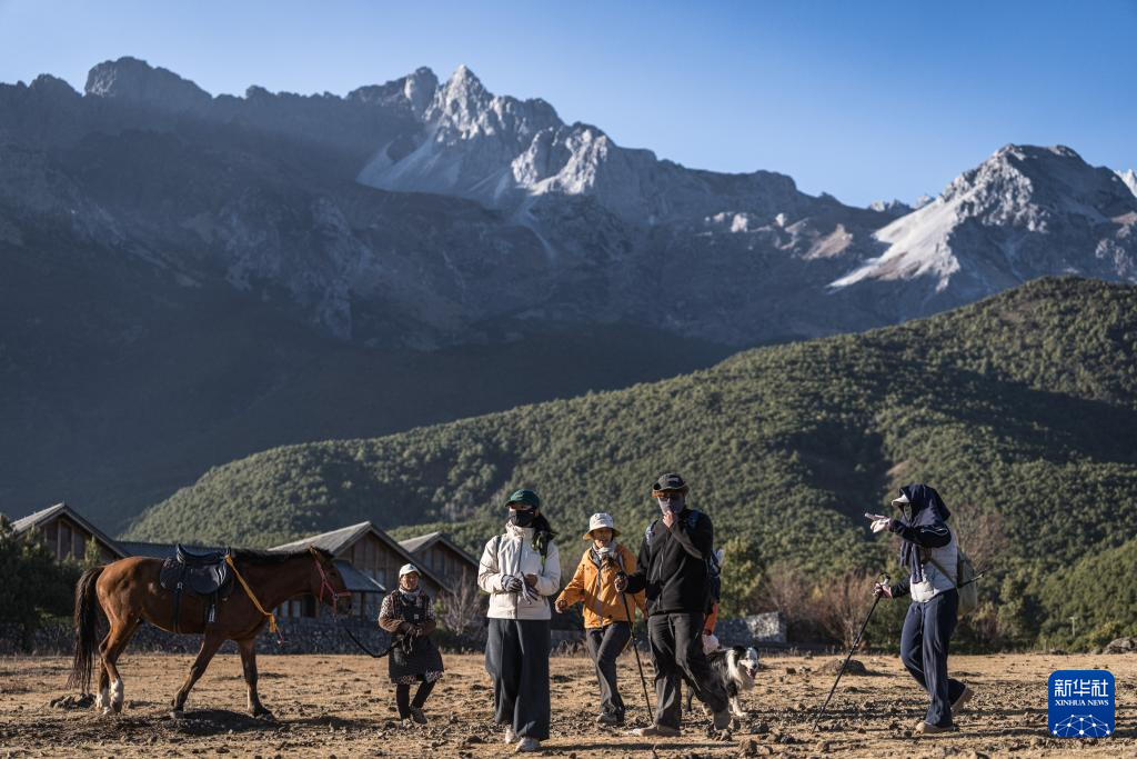 1月17日,游客在丽江市玉龙纳西族自治县白沙镇玉湖村徒步。