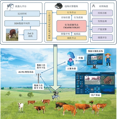 近日,中国农业科学院农业信息研究所科学数据研究室利用新一代信息技术,研制出肉牛行为识别轻量化模型MASM-YOLO,实现了对肉牛六类典型行为的快速精准识别,有效提升了牛群饲养管理效率,为放牧机器人装上了“看得清、看得准、跟得上”的智能之眼。
